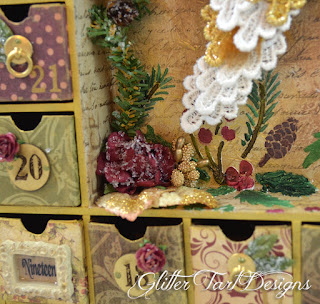 If you take a close look, I don't have a box 25. The instructions say the 25th box can be placed at your discretion. Problem is, I am not a boxy type of gall. So from the start I planned on leaving it out. But what to put in its place, because what fun is there in not opening something on the night before Christmas. Eureka! A special ornament to go on the tree. That's what the wings are.